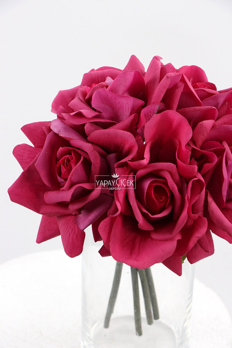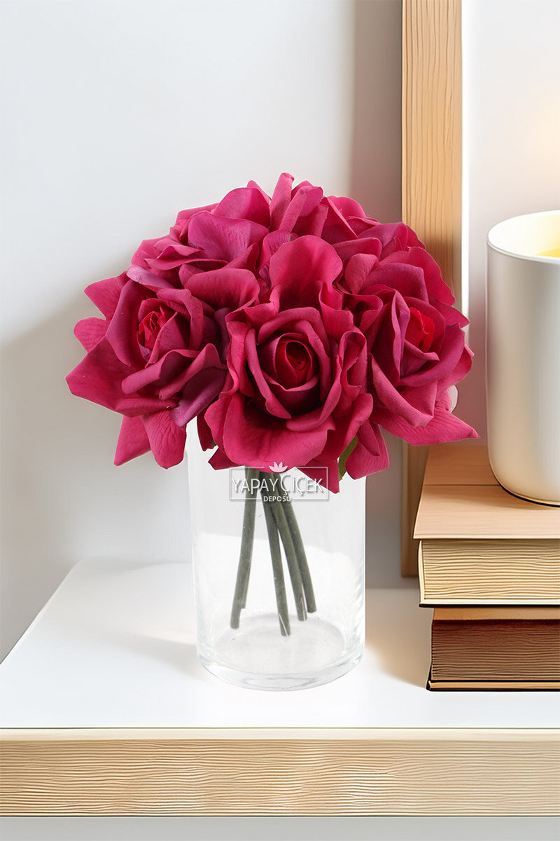 Yapay Premium 5li Islak Gül Demeti Fuşya-Mor