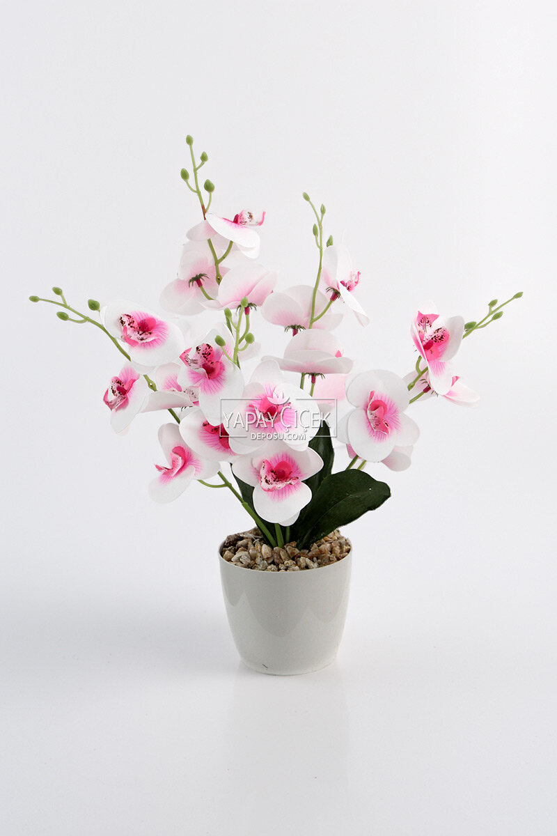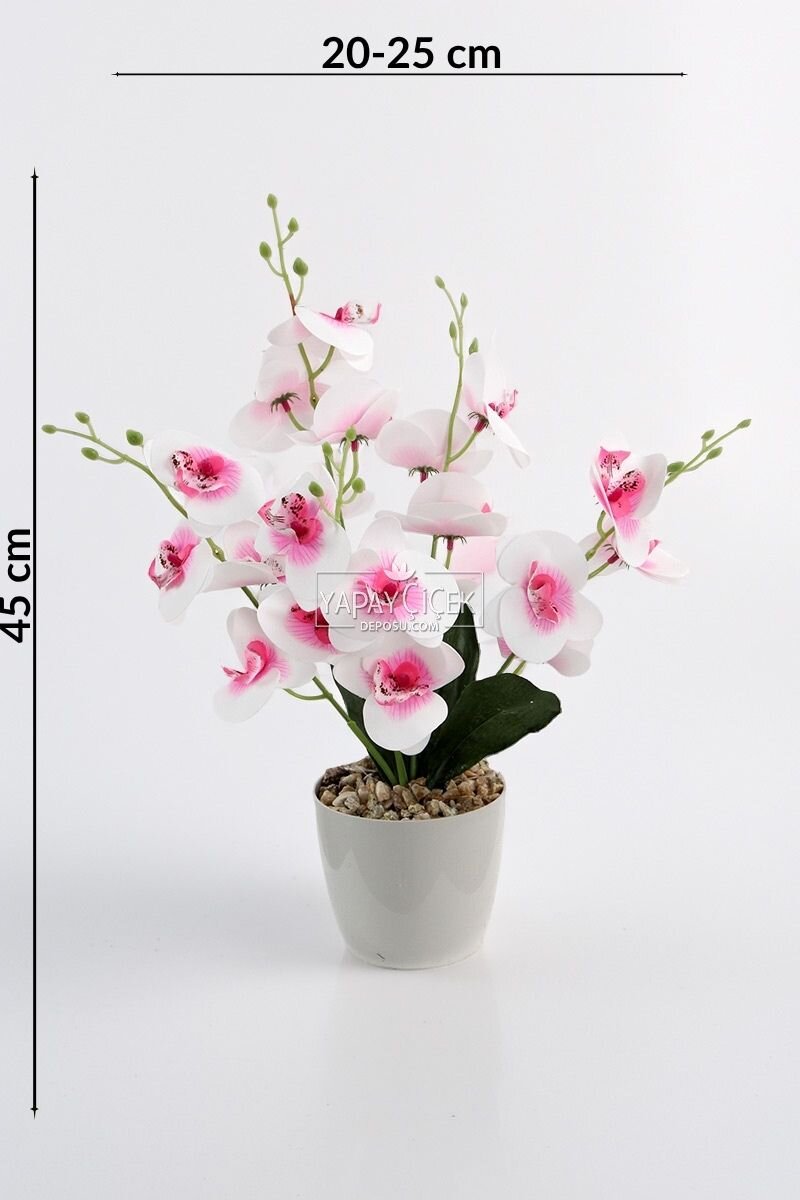 Yapay Saksıda 5 Dallı Islak Orkide Demeti 45 cm Beyaz - Pembe