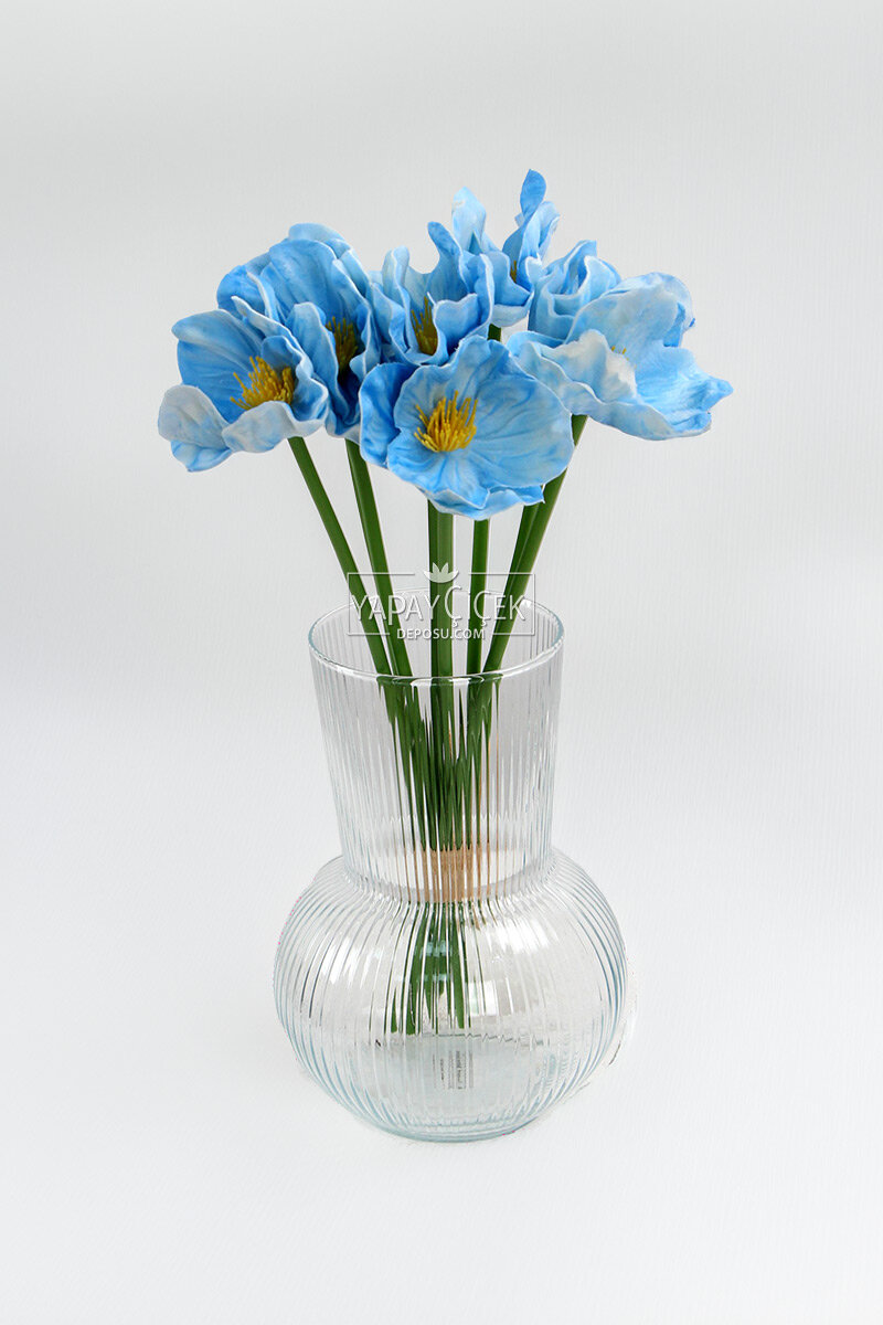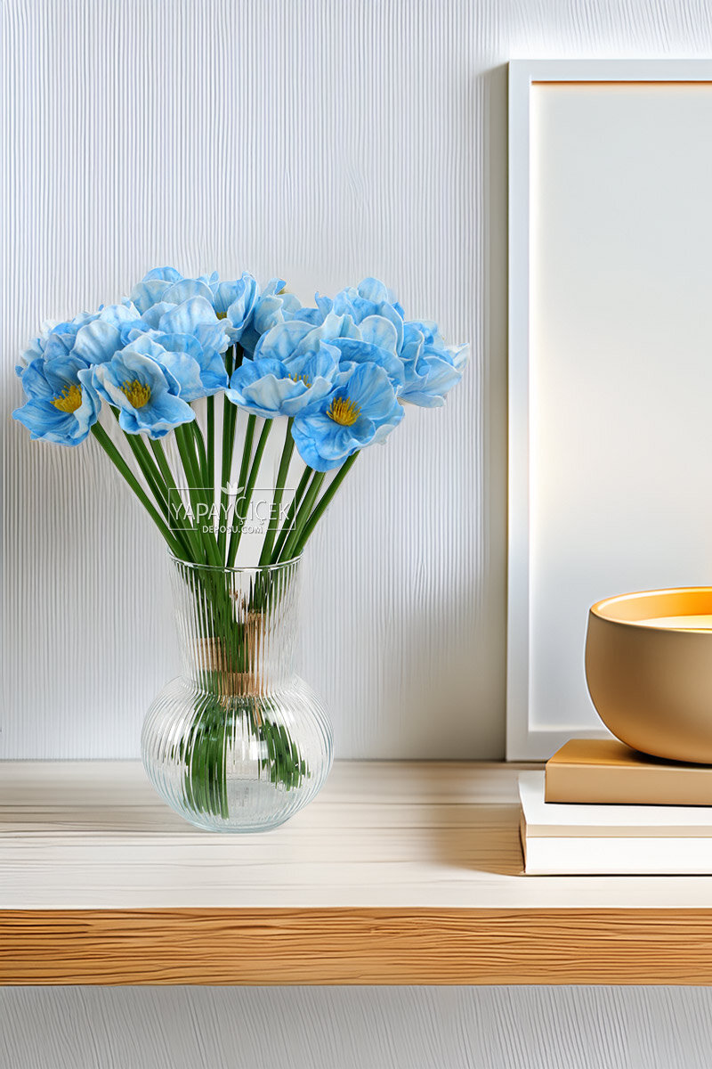 Yapay Çiçek 8 li Islak Dokulu Kır Lalesi Demeti 33 cm Mavi