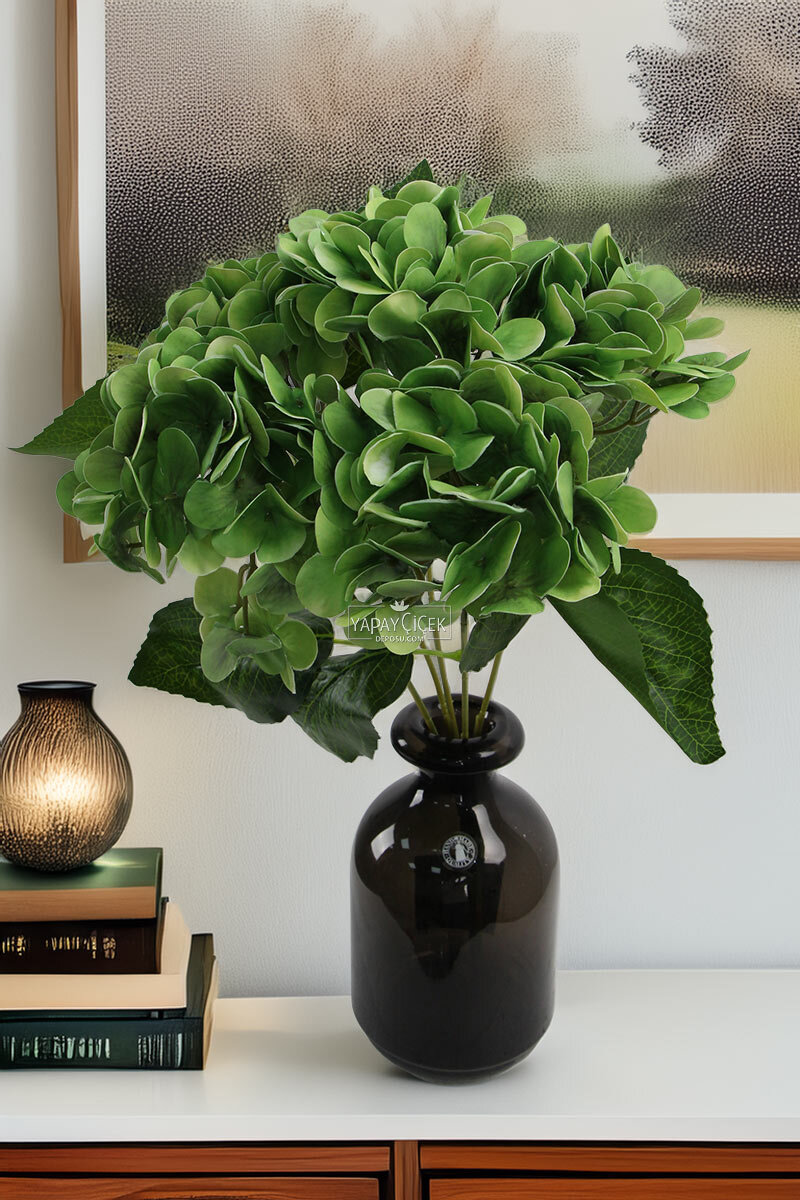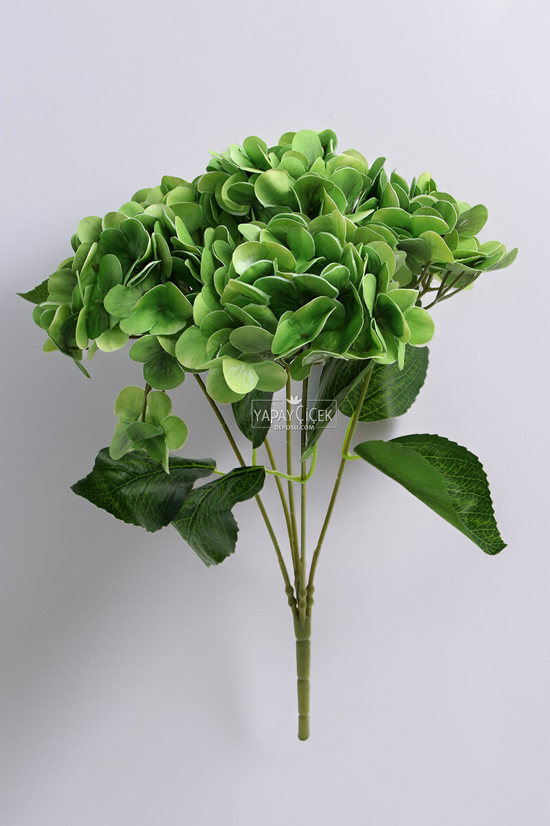 Yapay Lüx 5 Dallı Islak Ortanca Demeti 45 cm Yeşil