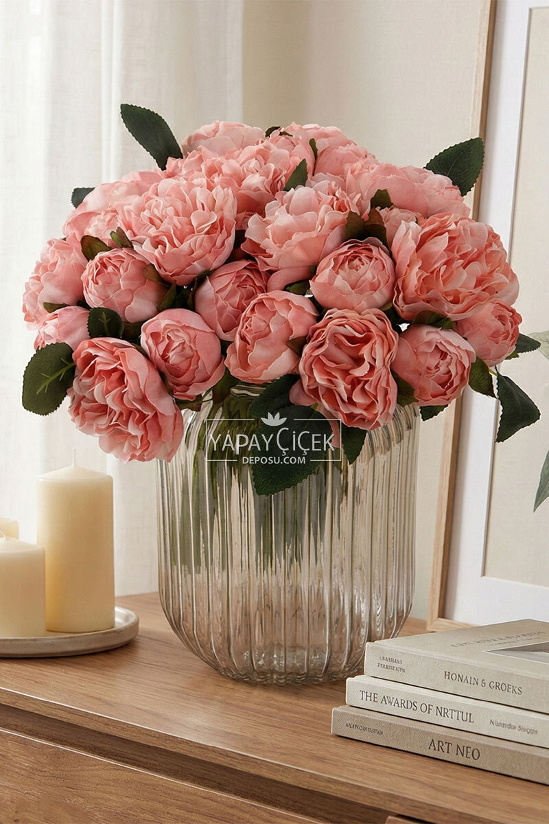Bu yapay lüks tırtıklı 11'li Erengül Buketi, koyu pembe çiçekleriyle göz alıcı bir zarafet sunuyor. Gerçekçi tırtıklı yaprakları ve canlı renkleri sayesinde, doğal bir buketin güzelliğini herhangi bir bakım gerektirmeden evinize taşıyor. Koyu pembe tonları, yaşam alanlarınıza romantik ve sıcak bir atmosfer katarken, yeşil yaprakları buketi daha canlı ve tamamlayıcı bir hale getiriyor. Şeffaf pembe bir vazoda sergilenen bu yapay buket, masa üstü dekorasyonundan ofis ortamlarına kadar geniş bir yelpazede estetik bir çözüm sunar. Bakım gerektirmeyen, her mevsim aynı tazeliği koruyan bu buket, evinizin veya iş yerinizin dekorasyonunda lüks bir dokunuş arayanlar için mükemmel bir seçimdir. Hem zarif hem de dayanıklı olan Erengül buketi, iç mekanların büyüleyici bir parçası olarak dikkat çeker.