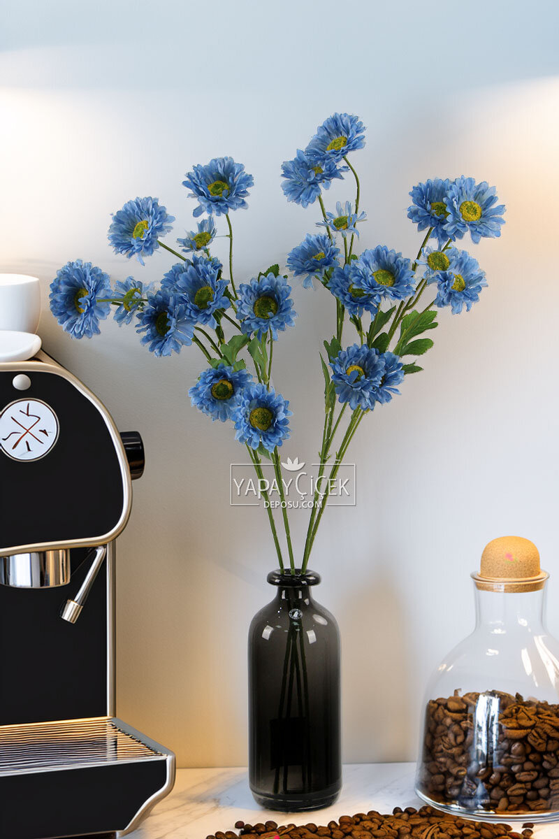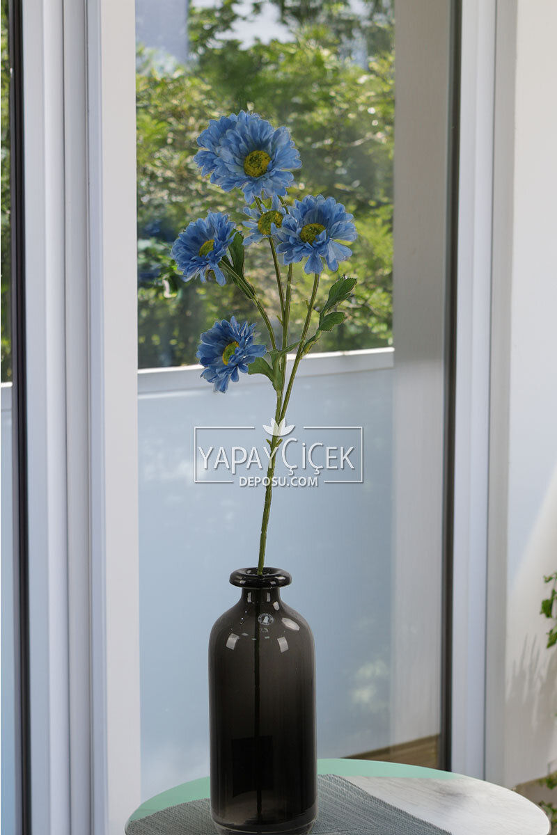Yapay Çiçek 6 Çiçekli Fransız Gerberası Dalı 75 cm Mavi