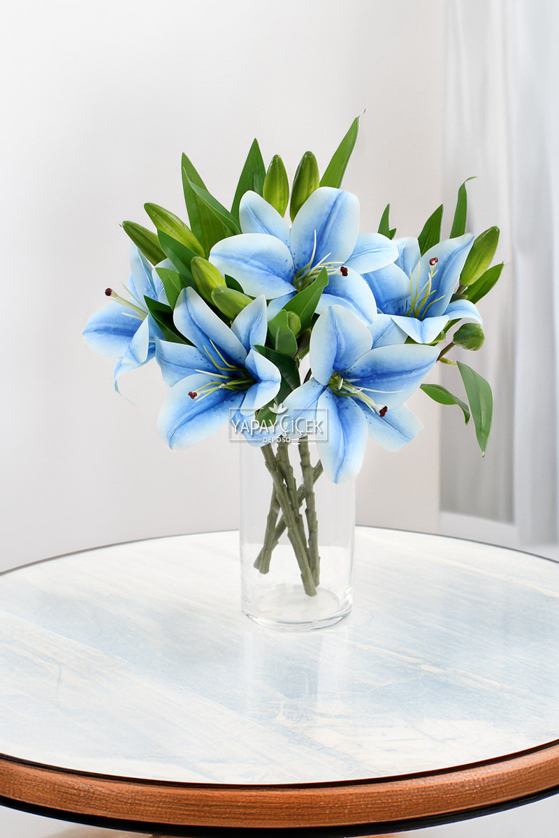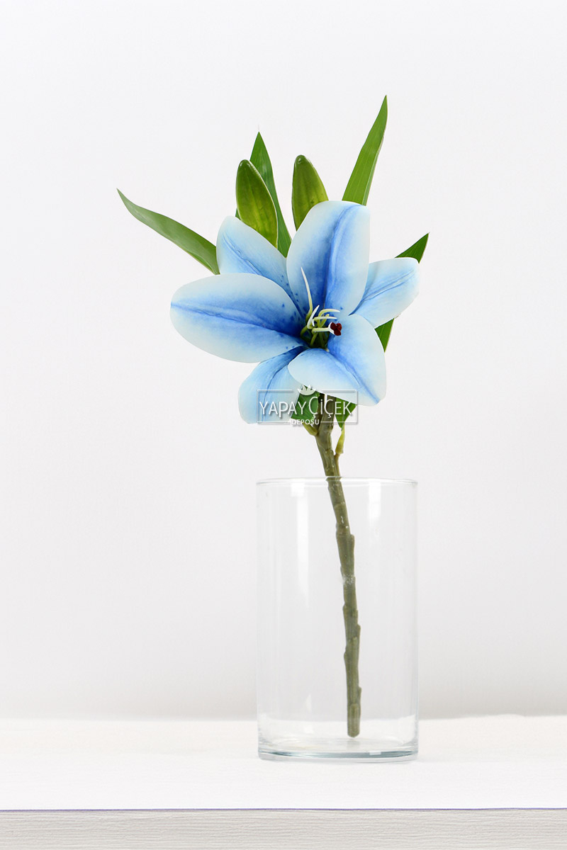Yapay Çiçek Küçük Dal Islak Zambak 35 cm Mavi