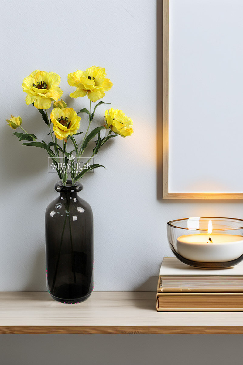 Yapay Premium Yumşak Dokulu 3lü Arı Çiçeği Dalı 50 cm Sarı