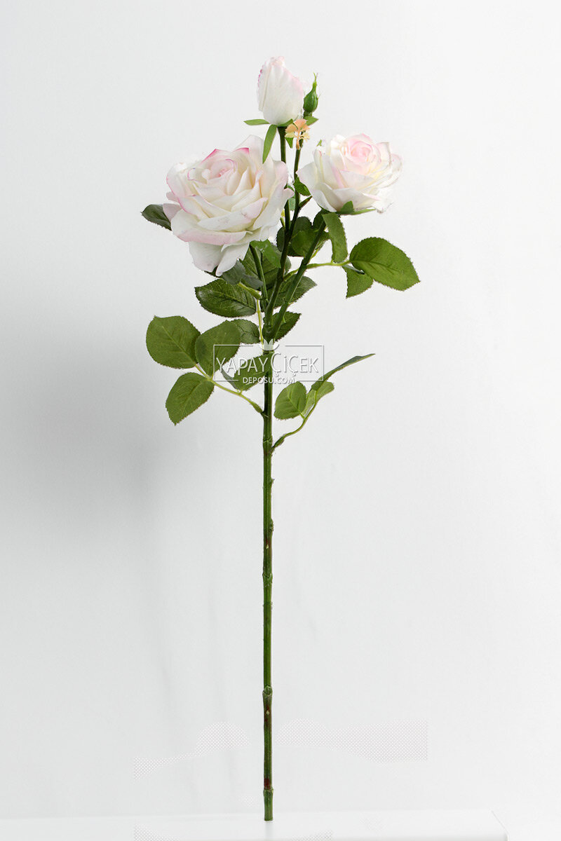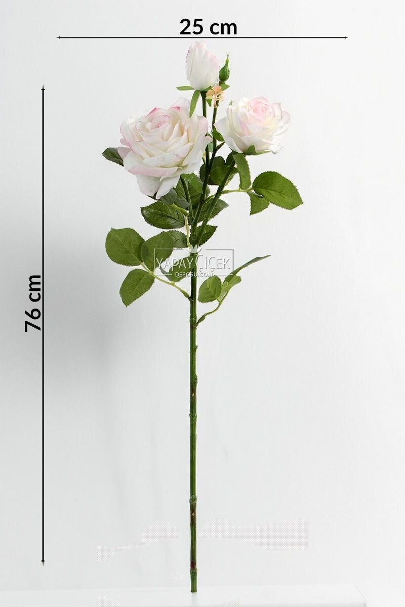 Yapay Premium 3lü Goncalı Gül Dalı 76 cm Ebruli