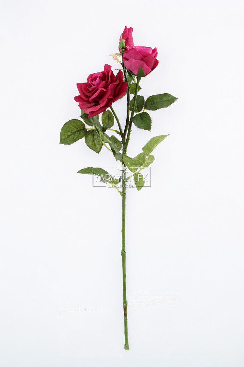 Yapay Premium 3lü Goncalı Gül Dalı 76 cm Fuşya - Mor