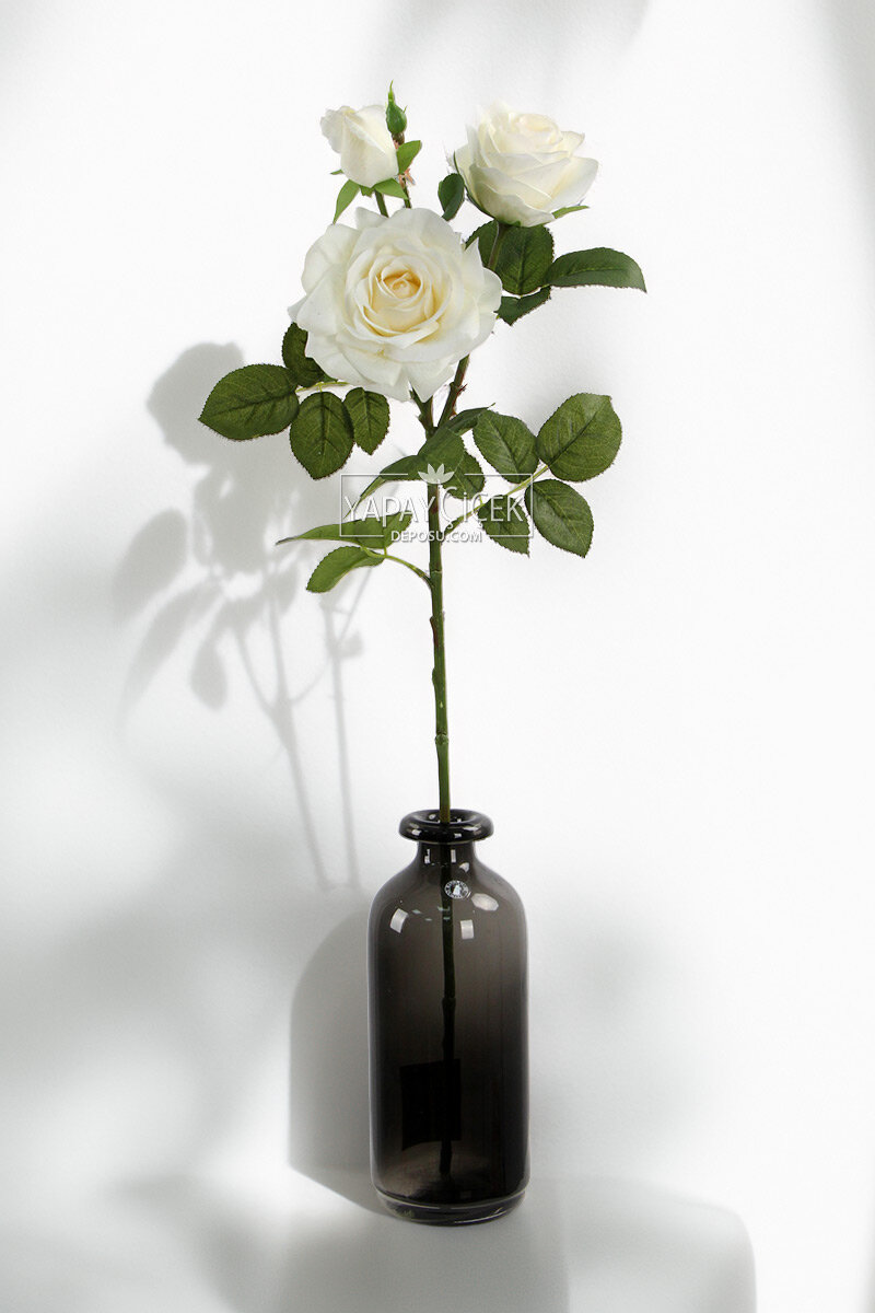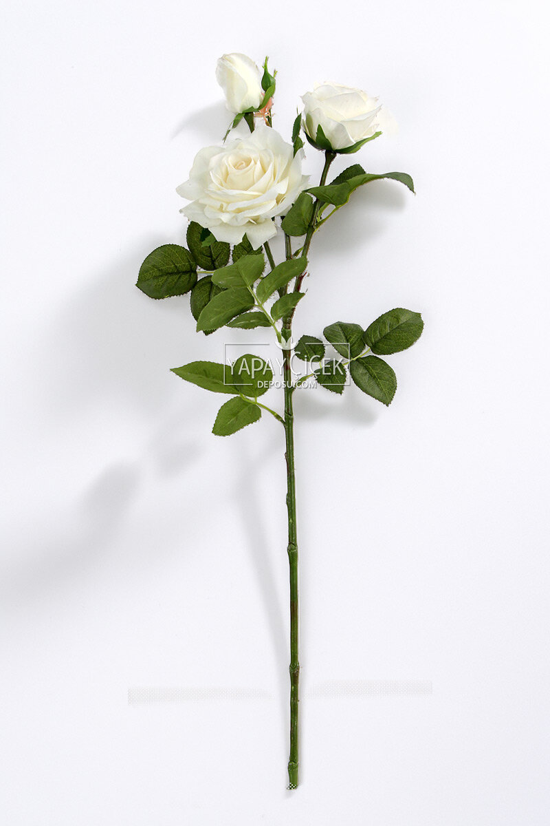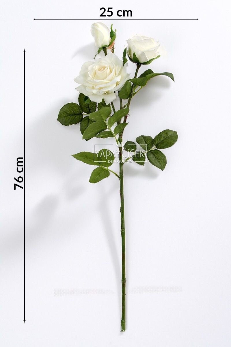 Yapay Premium 3lü Goncalı Gül Dalı 76 cm Krem
