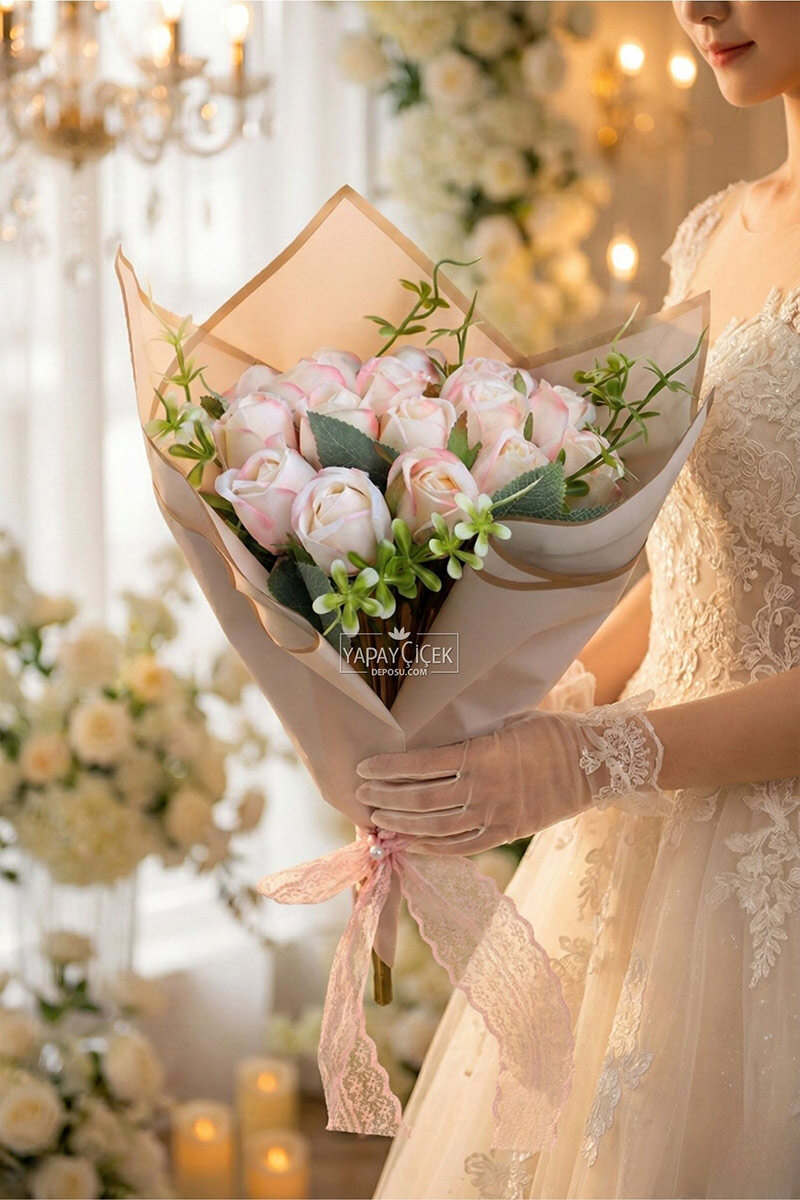 Yapay Pudra Rüyası Özel Gün Buketi, zarif ve romantik tasarımıyla özel anlarınıza yumuşak ve şık bir dokunuş katar. Dengeli çiçek yerleşimi ve doğal görünümlü yapısı sayesinde düğün, nişan, söz ve fotoğraf çekimlerinde estetik bir bütünlük sağlar.
