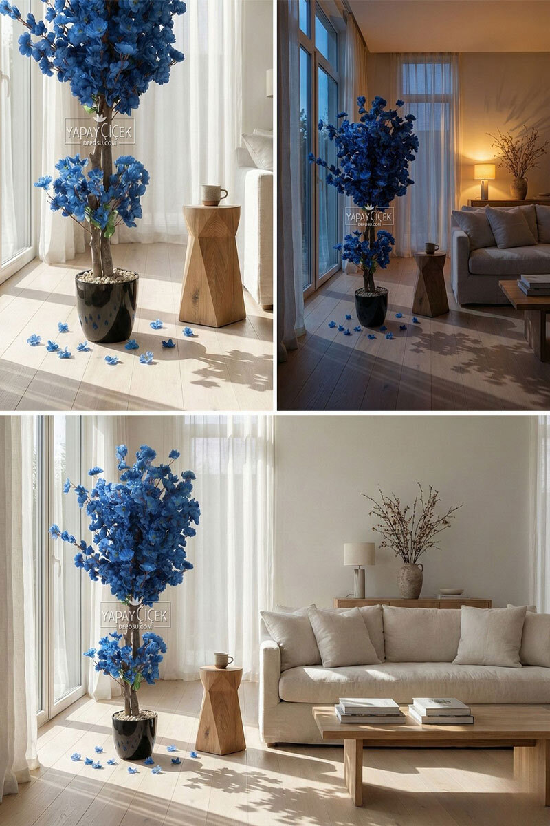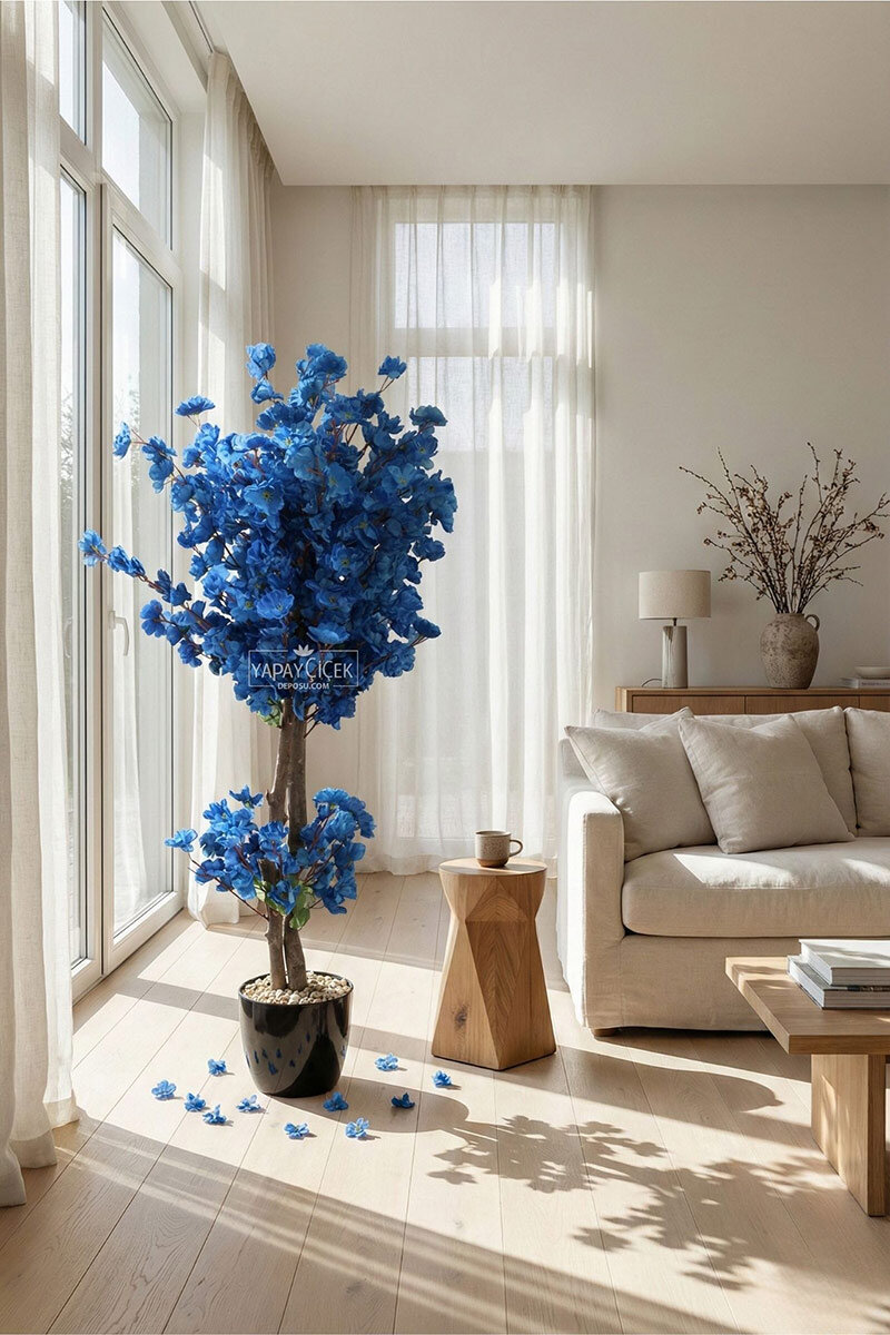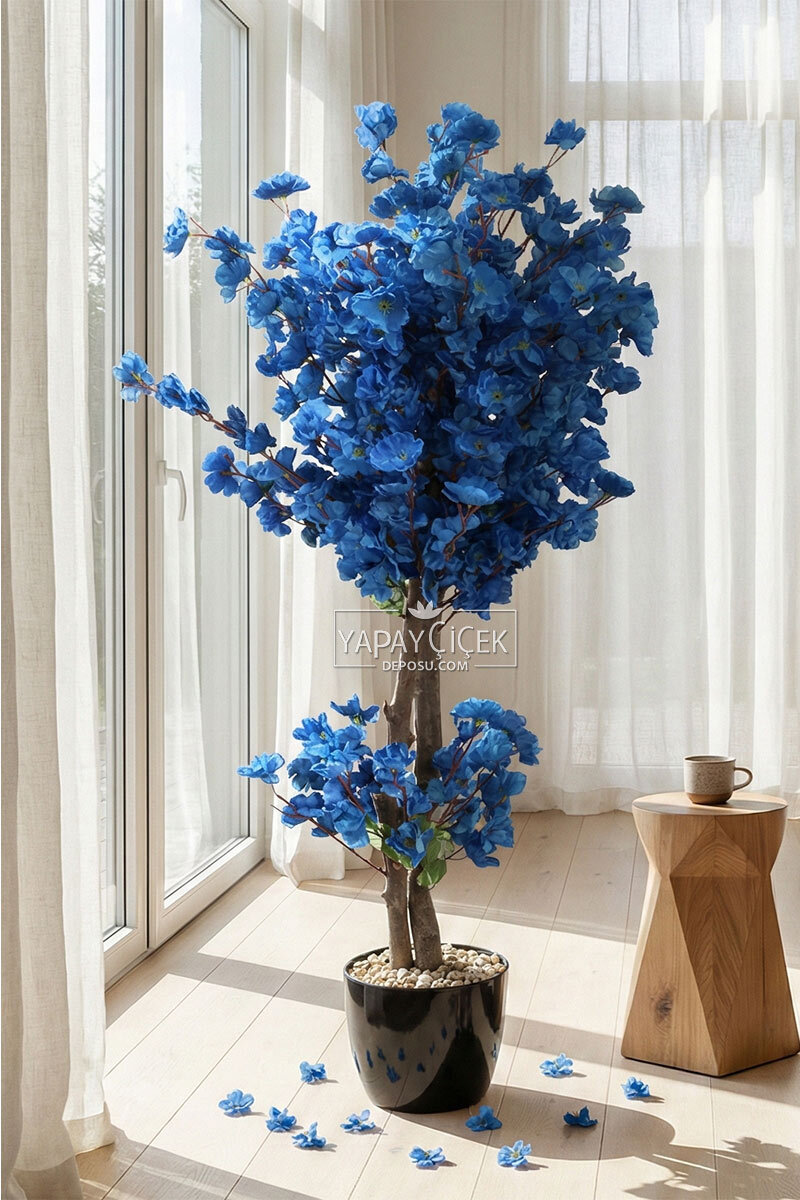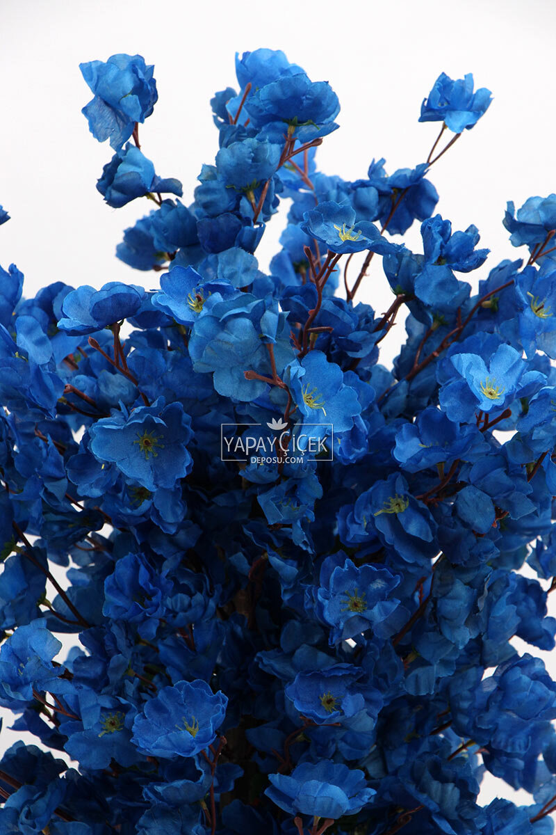 Saksıda Yapay 2 Gövdeli Bahar Dalı Ağacı 100 cm Lacivert