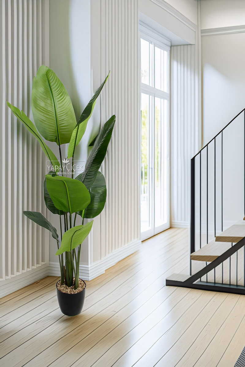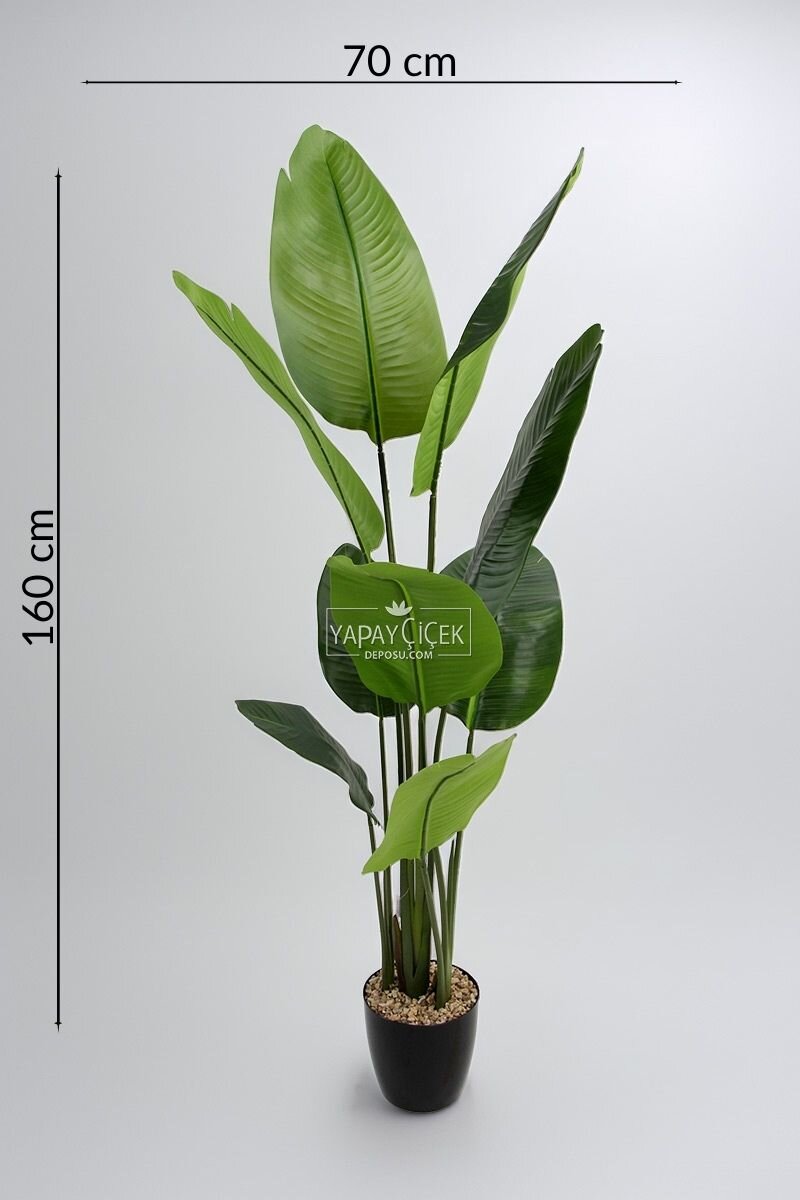 160 cm yüksekliği ve 70 cm genişliği ile öne çıkan bu yapay starliçe ağacı, tropikal bitkilerin zarif ve hacimli duruşunu mekânınıza taşır. 9 geniş yaprağı, gerçeğine yakın damar detayları ve doğal formu sayesinde salon, oturma odası, ofis, mağaza vitrinleri veya giriş alanlarında etkileyici bir dekoratif vurgu oluşturur.