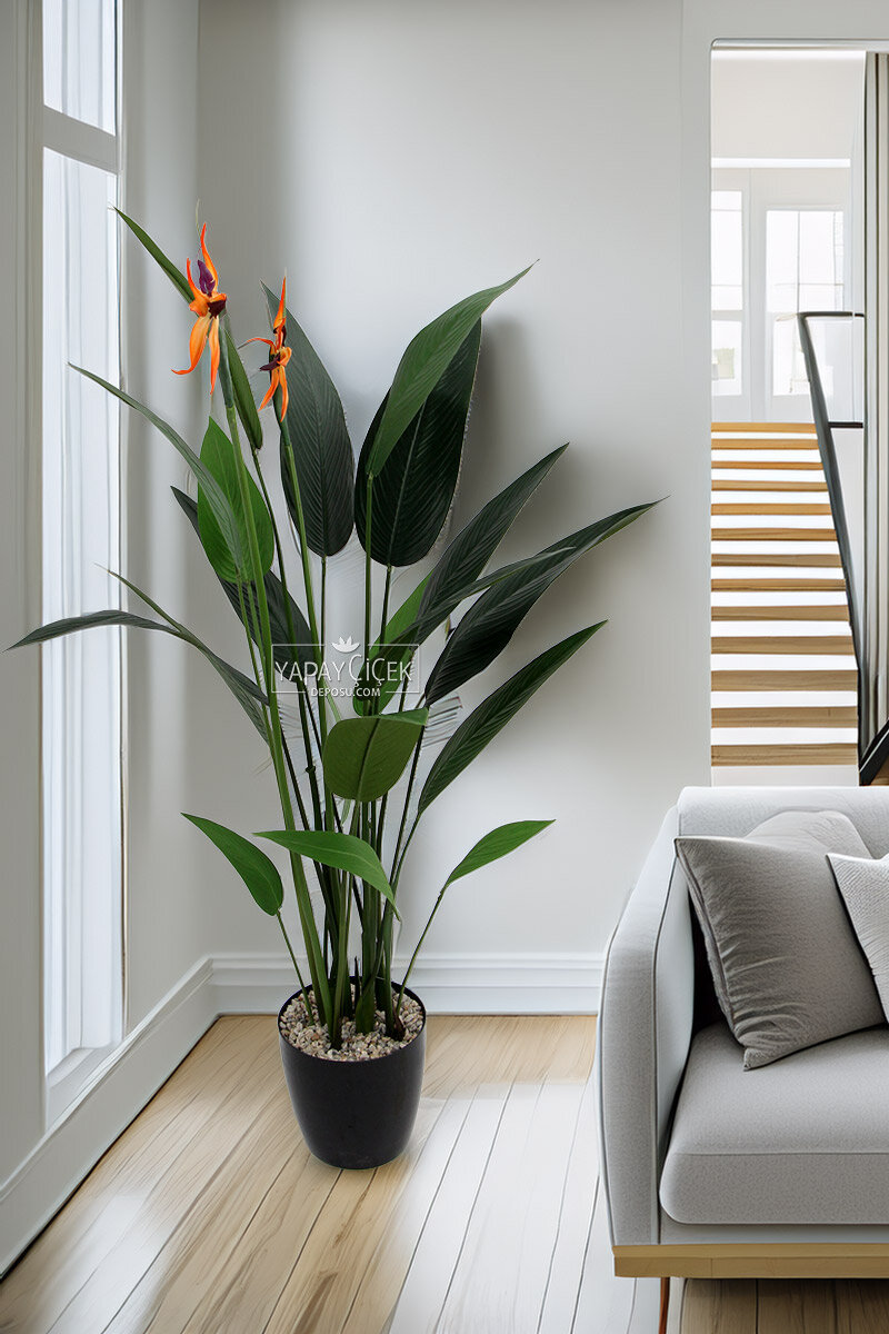 160 cm yüksekliği ve 70 cm genişliği ile dikkat çeken bu yapay çiçekli starliçe ağacı, tropikal bitkilerin zarif ve hacimli duruşunu mekânınıza taşır. Geniş yaprakları ve gerçekçi çiçek detayları, doğal bir görünüm sunarken salon, oturma odası, ofis, mağaza vitrinleri veya giriş alanlarında güçlü bir dekoratif vurgu oluşturur.