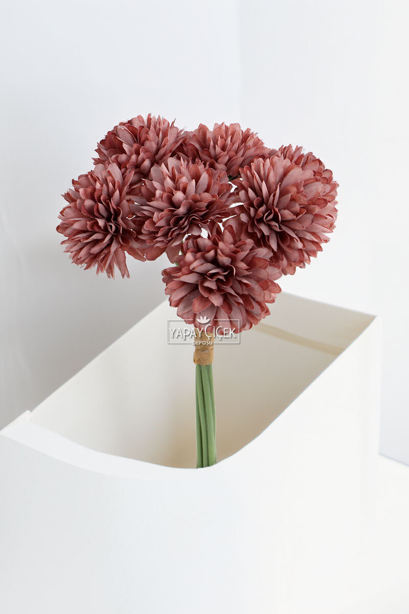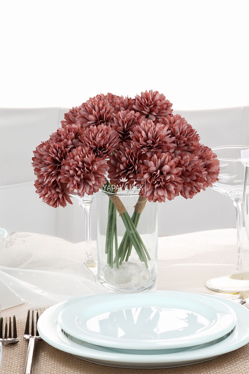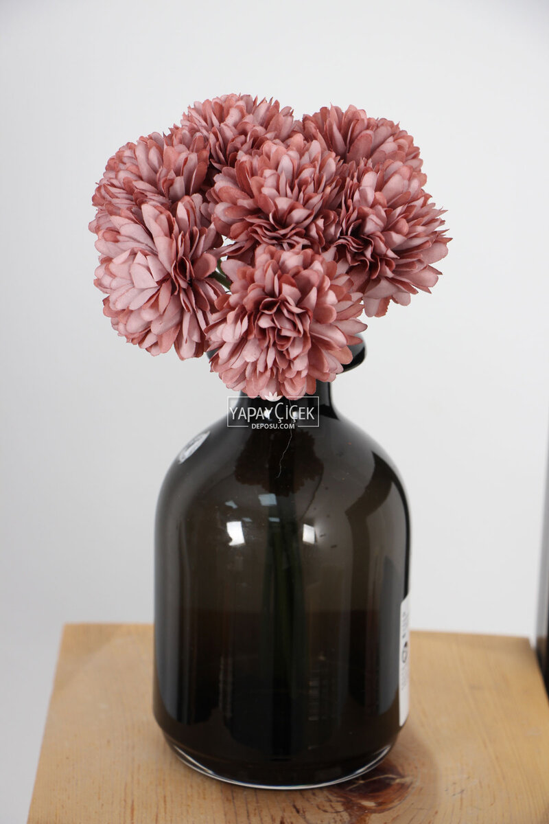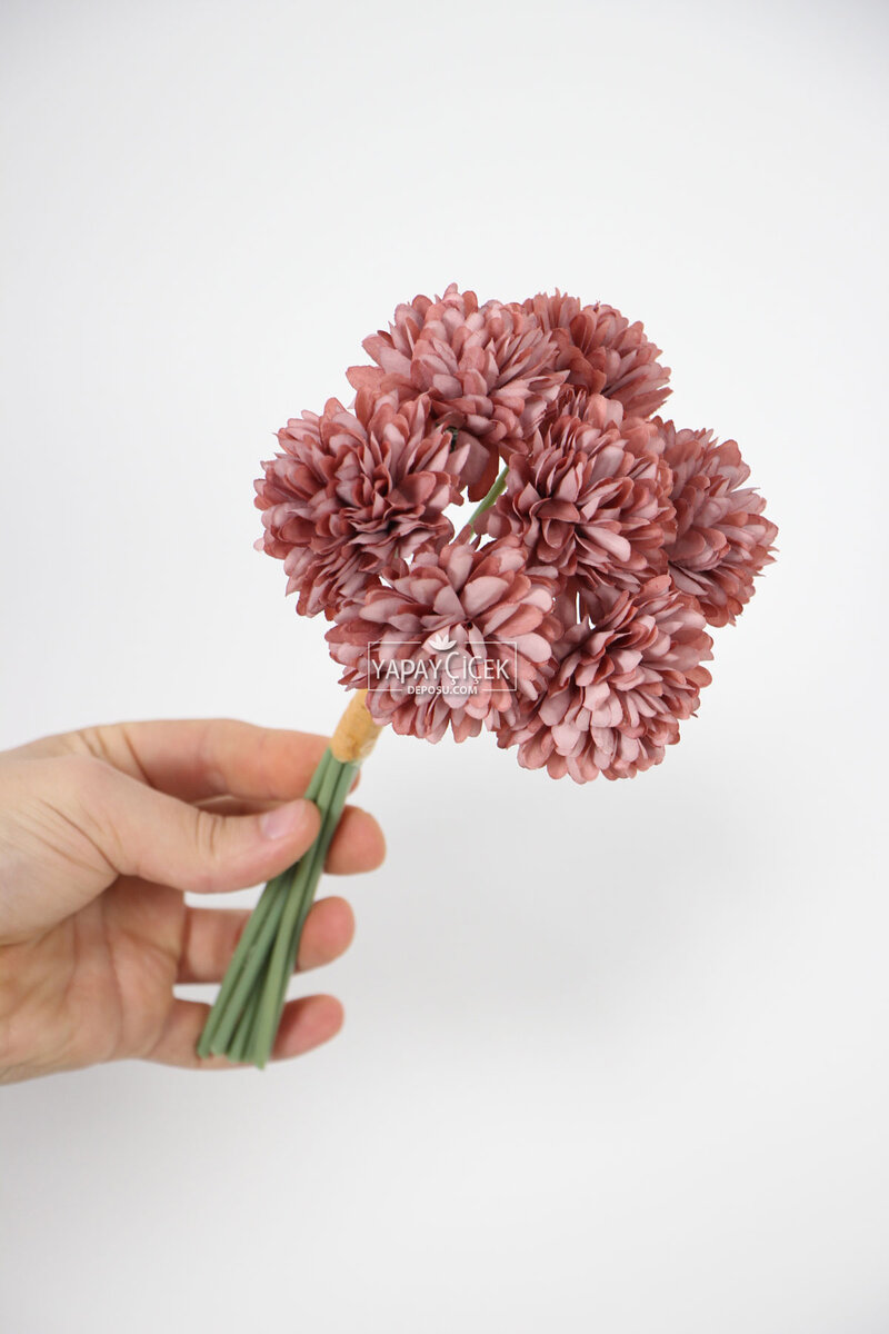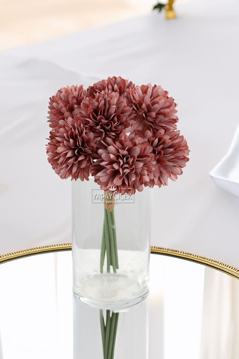 Yapay Çiçek Top Krizantem 7li Mini Kartopu Demeti 28 cm Gül Kurusu