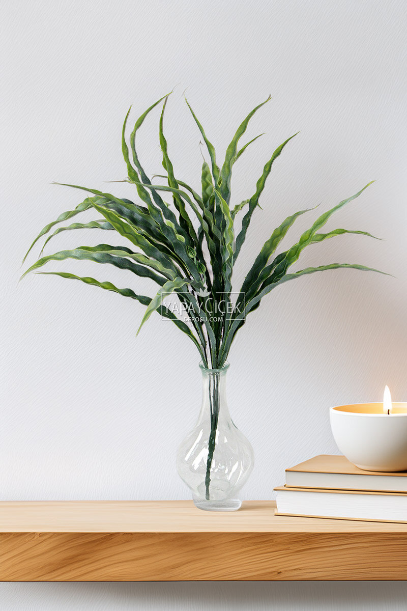 Yapay UV Dayanıklı Dalgalı Çimen Demeti Yeşil 50 Cm Özellikleri;