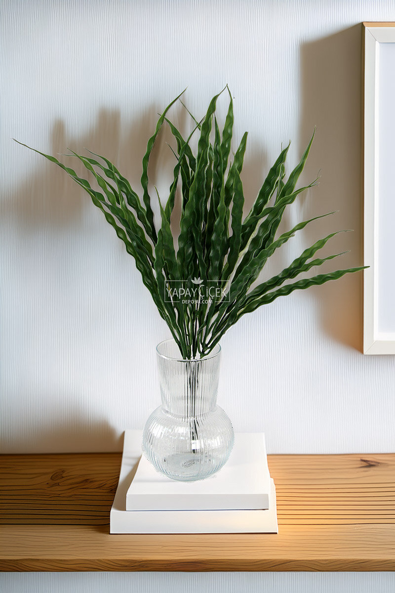 Yapay UV Dayanıklı Dalgalı Çimen Demeti Yeşil 50 Cm Özellikleri;