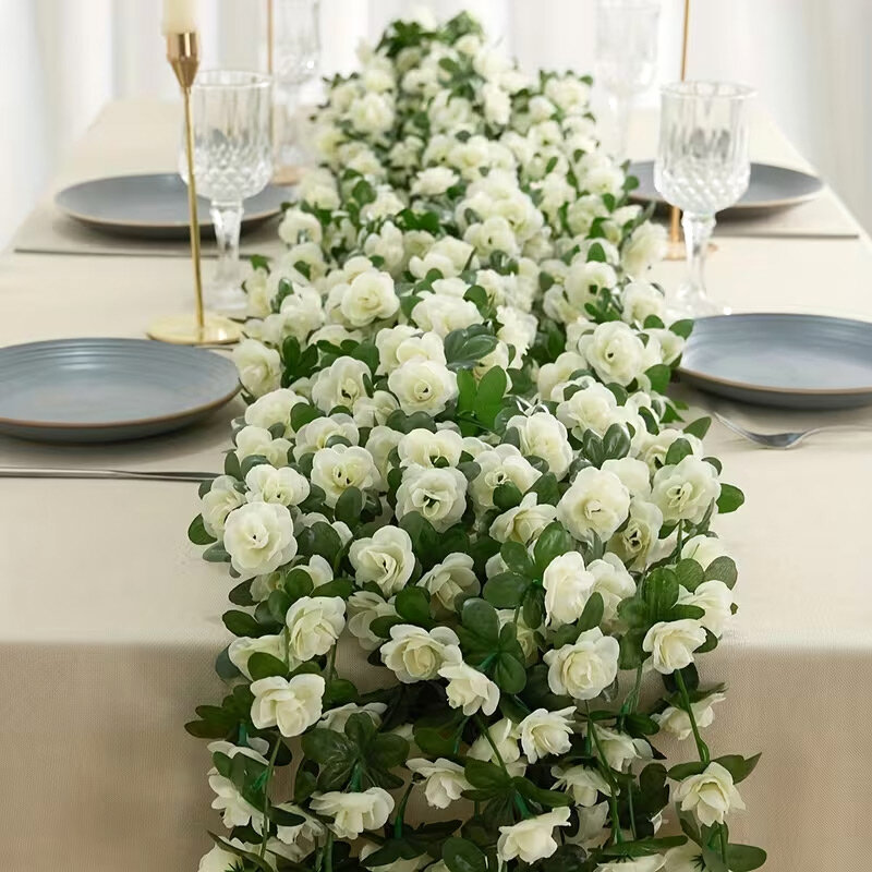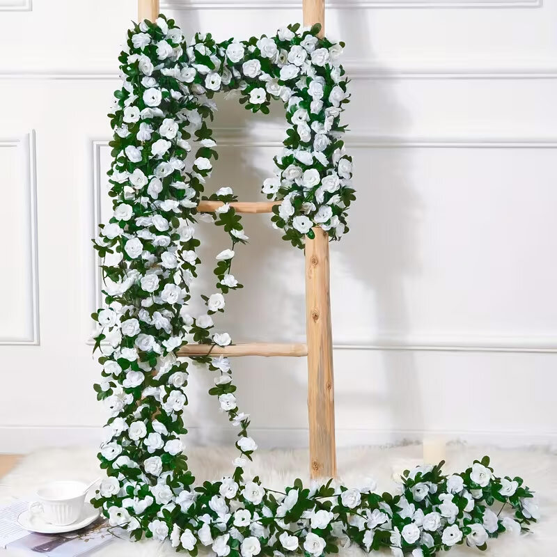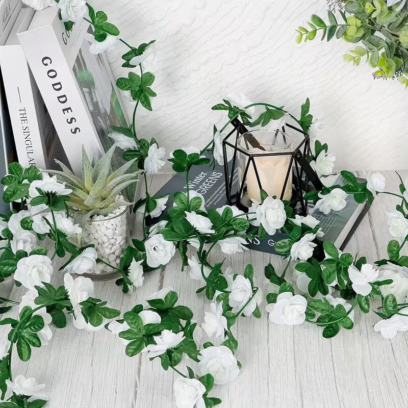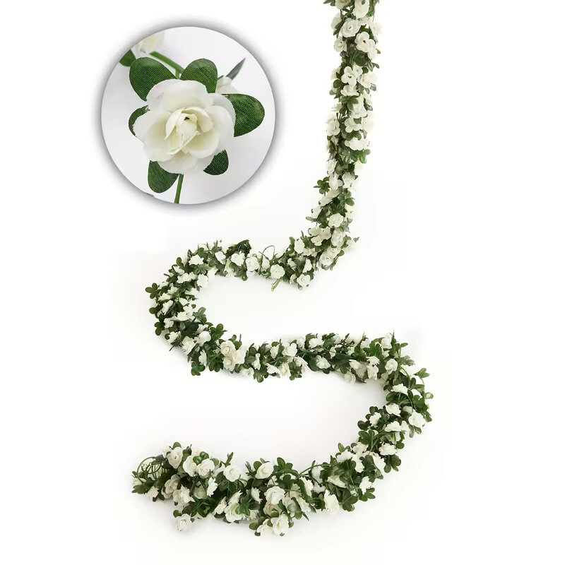 Yapay Mini Güllü Sarılabilir Sarmaşık 240 cm Beyaz