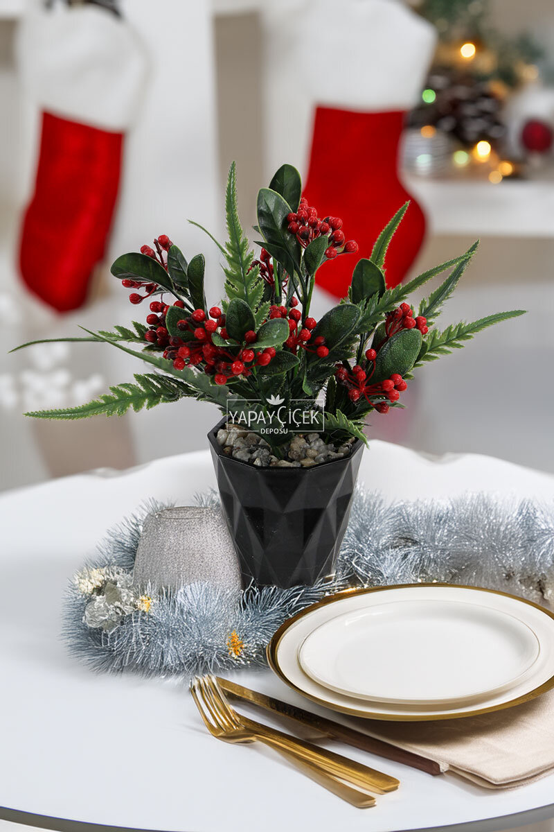 Yapay Çiçek Saksıda Kokinalı Hançer Bitkisi Yeni Yıl Masa Çiçeği 25 cm