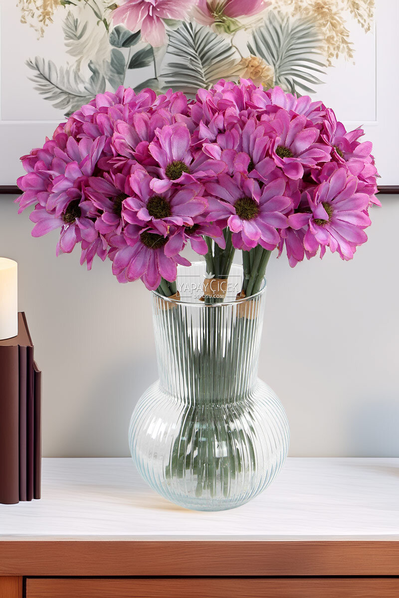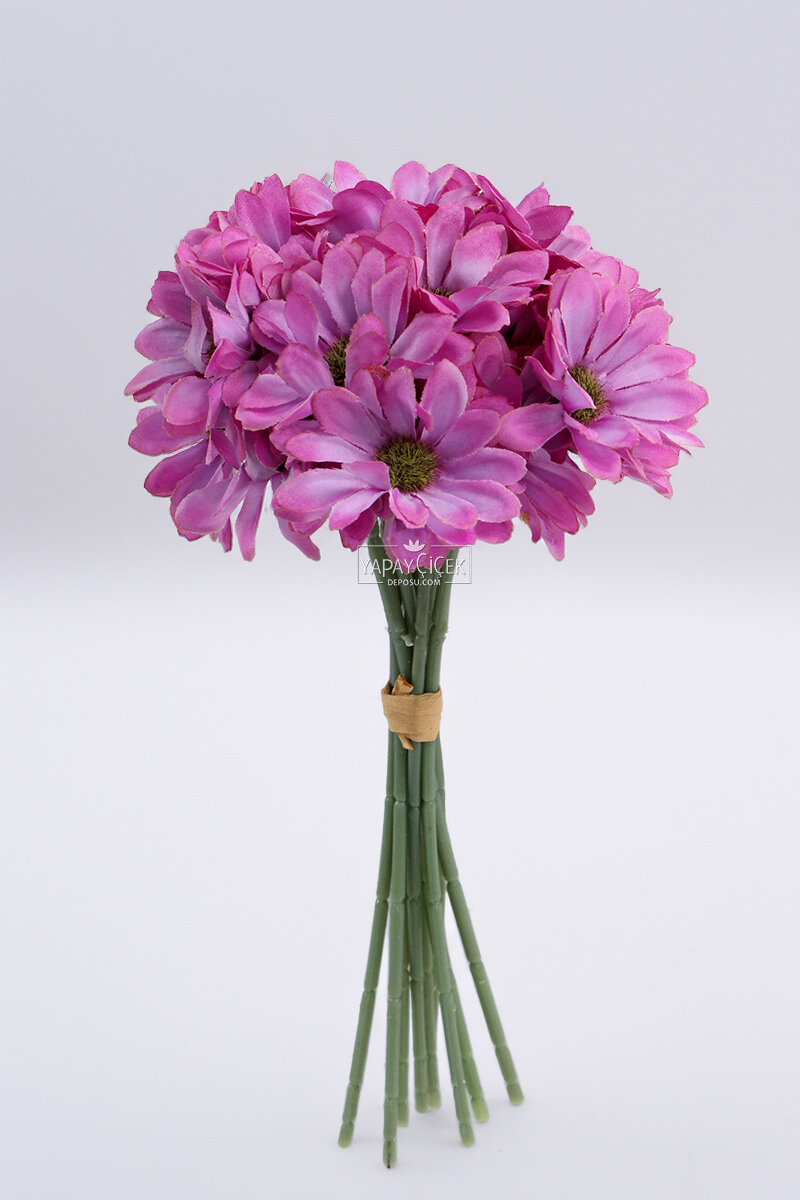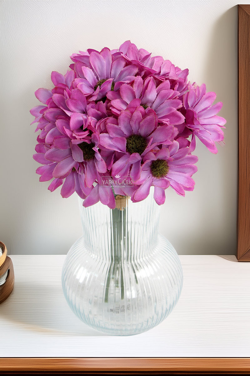 Yapay 9 Dallı 36 Çiçekli Yoğun Mayıs Papatyası Demeti 30 cm Mor