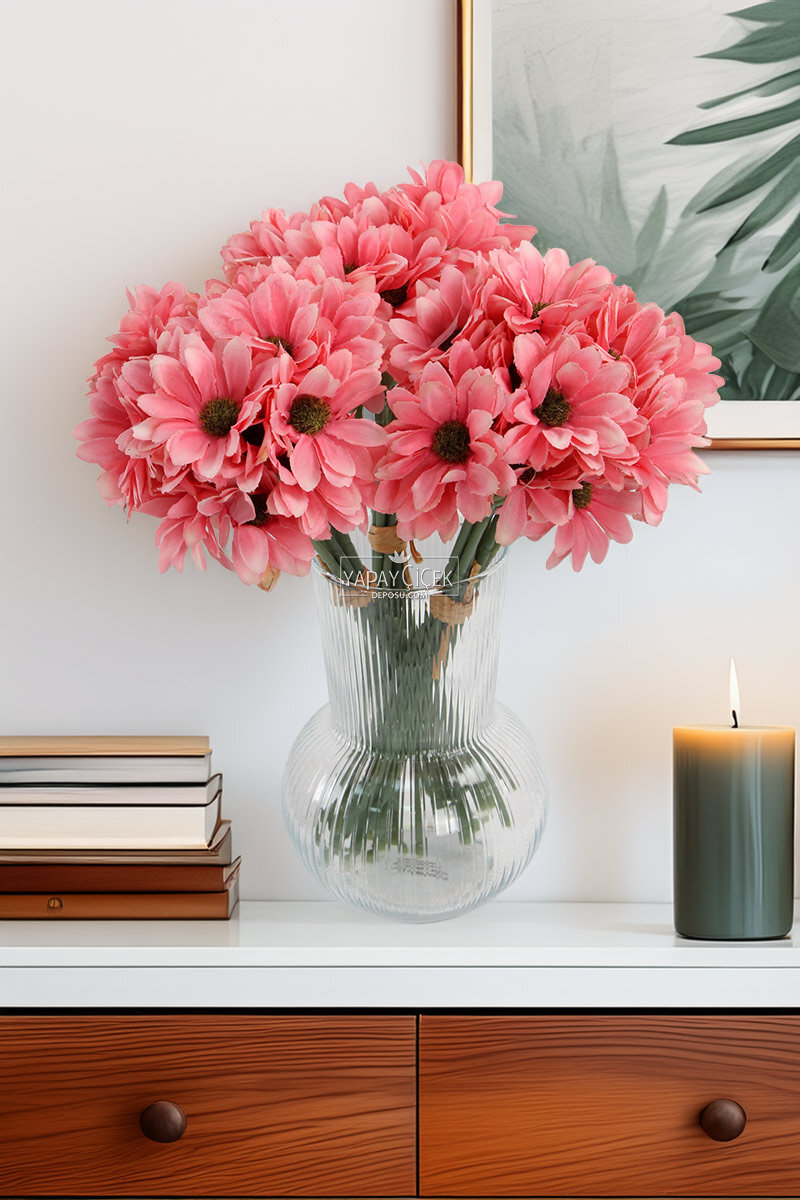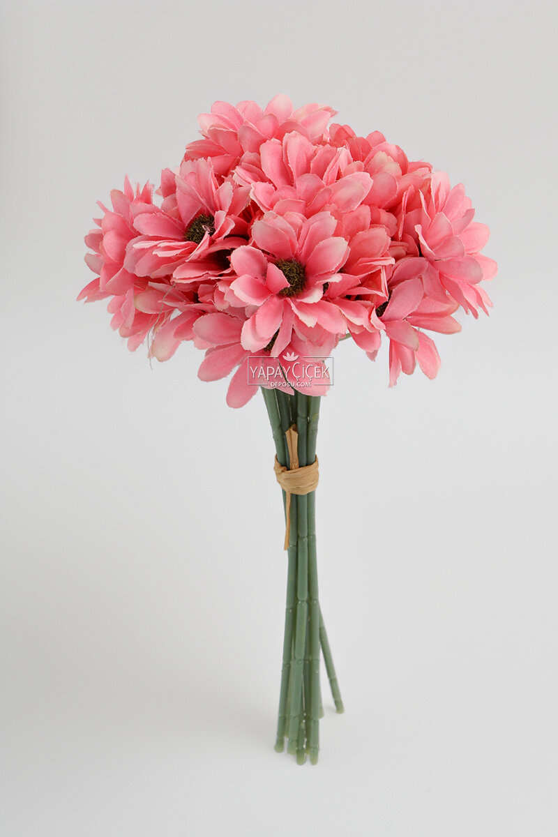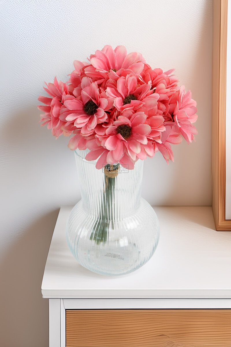 Yapay 9 Dallı 36 Çiçekli Yoğun Mayıs Papatyası Demeti 30 cm Pembe